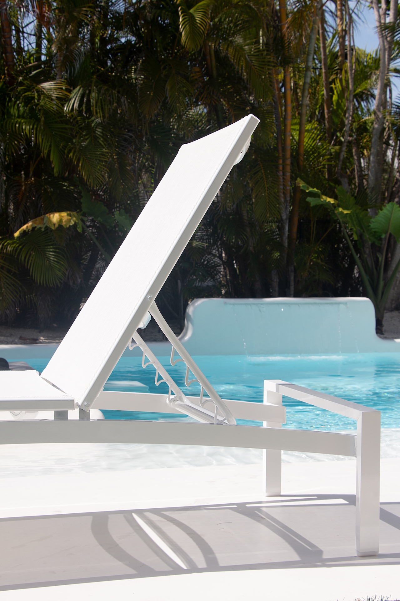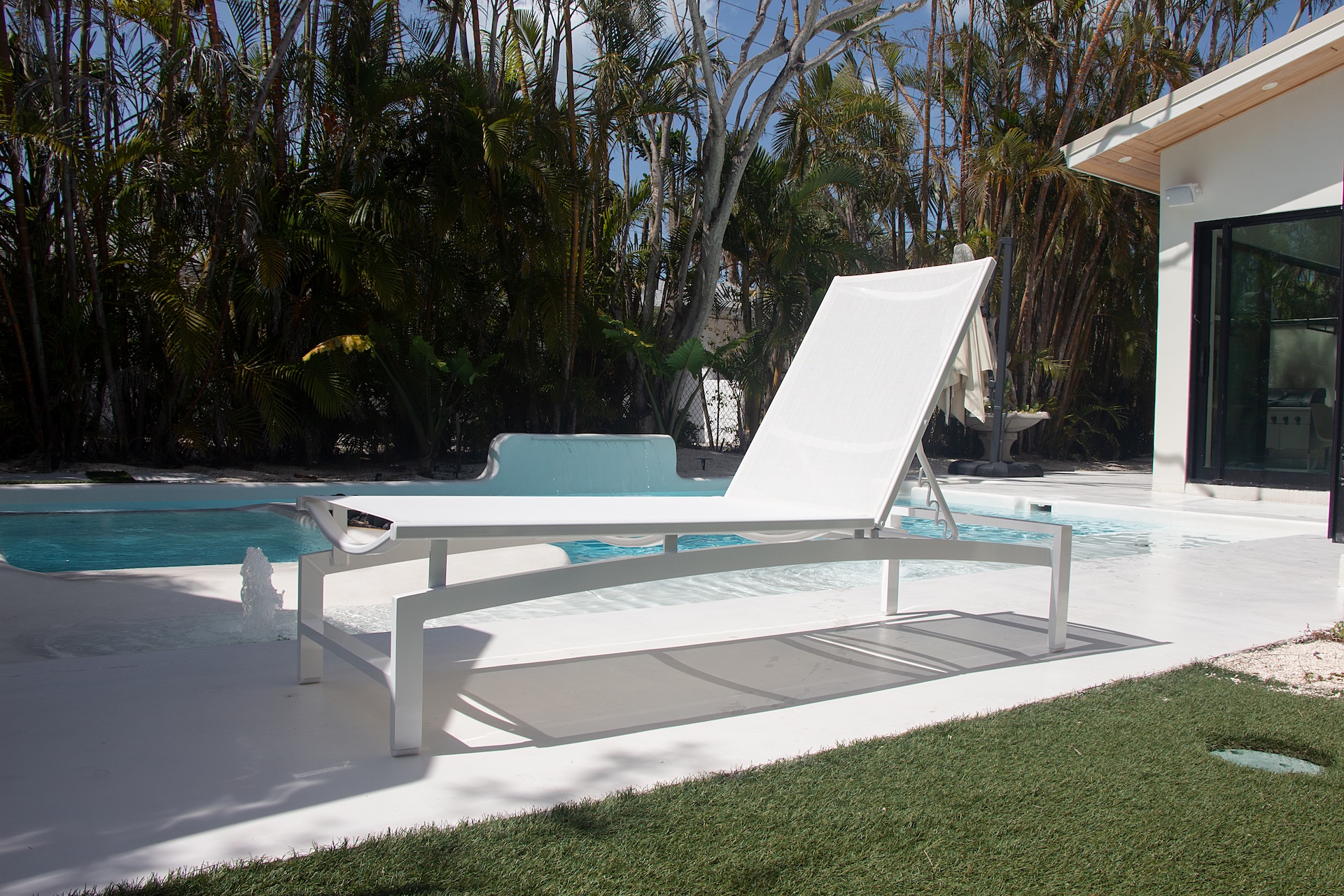 Elevate your outdoor space with the striking and luxurious SD140 Sling Chaise Lounge.